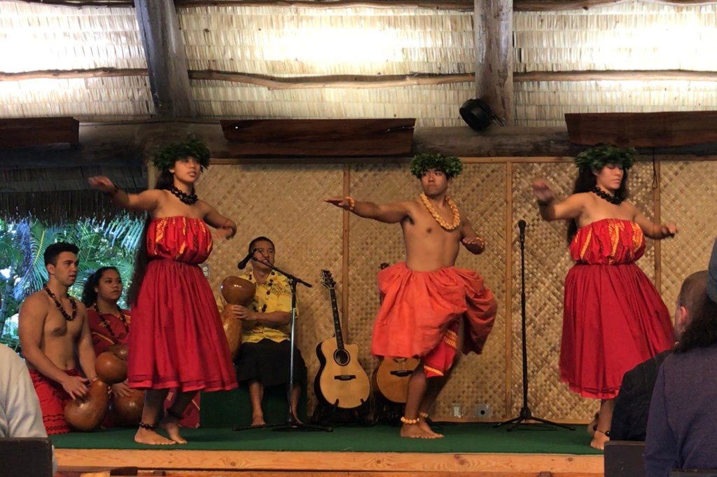 Polynesian Cultural Center is a series of mini model villages which show the styles of housing, tools, dance, games, food, etc. of a number of Polynesian island cultures. People from those cultures demonstrate and educate at each place. It takes a full day to really see and is full of performances and interactive activities (fire dancing, storytelling, music, dance, grass weaving, cooking… ). It was really fun to do with a kid, but good for adults too. The shops there had work from local artists.