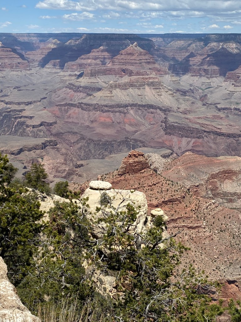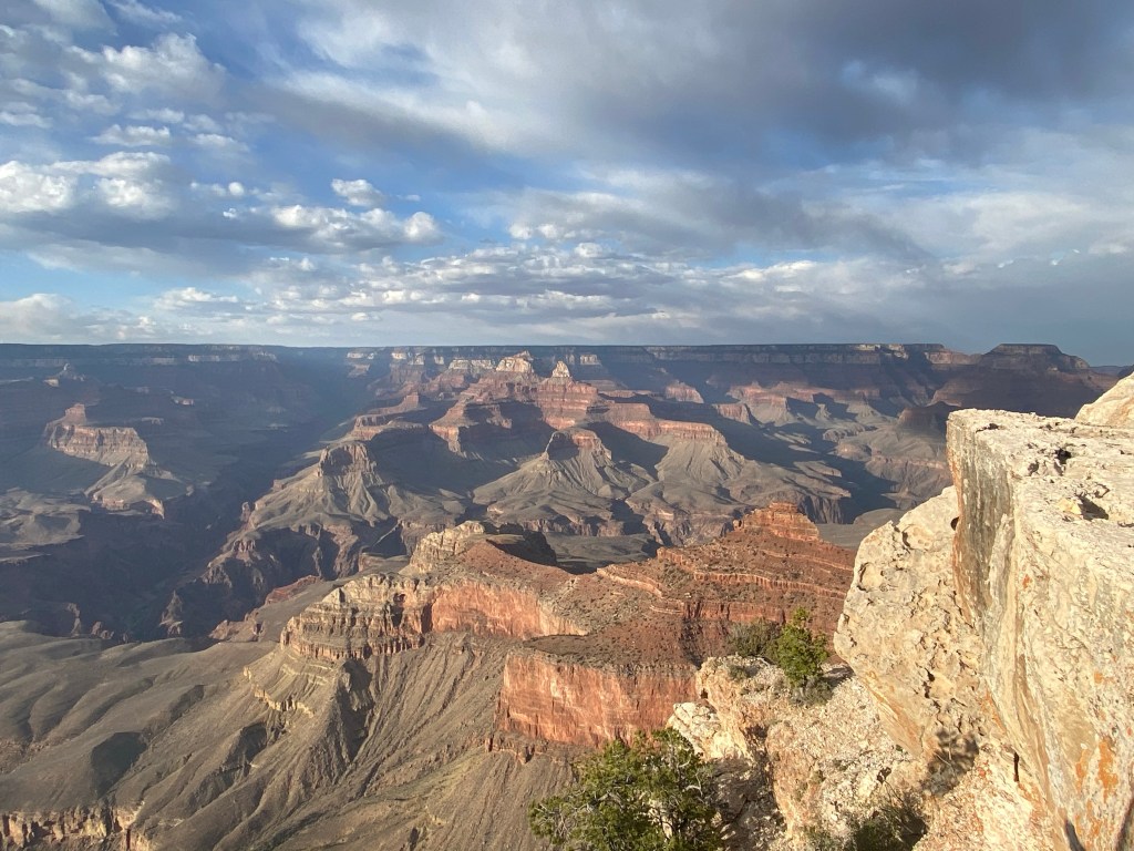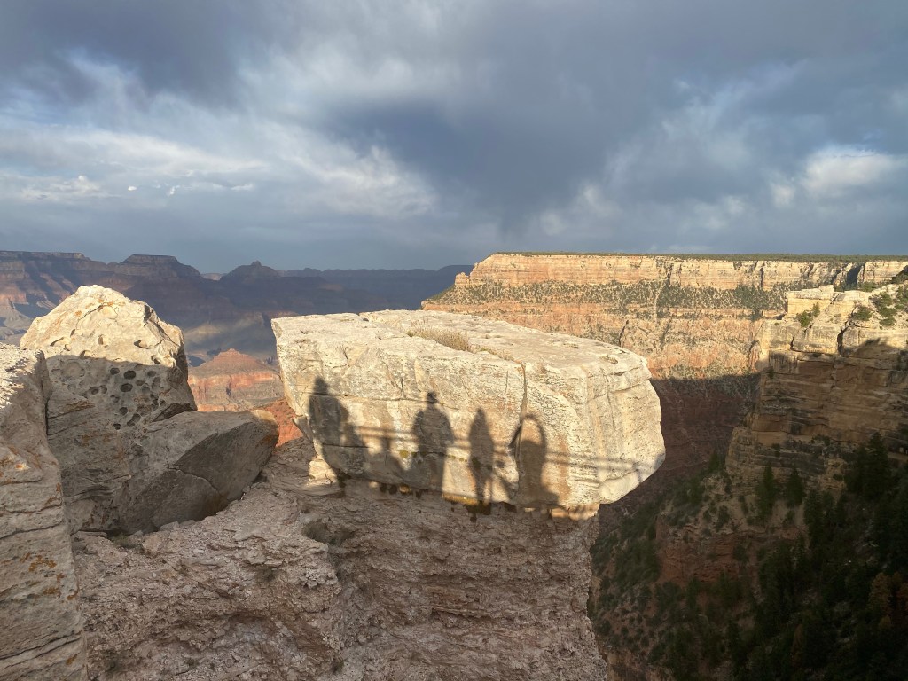 We got into the Grand Canyon Village in time to see Mather’s Point at Sunset with lovely dramatic skies. It is pretty awe inspiring. Pictures just don’t capture the sheer scale of the thing.