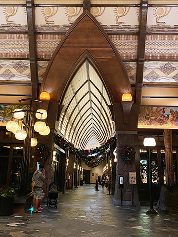Aulani is easy and restful. If you have kids over 8 or so you can let them roam free in the pool area knowing there are a battalion of lifeguards everywhere. For us this was made easier by my daughter having an Apple watch so we could contact her and vice versa and we had her location at all times. The sound of fountains is everywhere. There is a lazy river, two waterslides, a spa, a beach… just very nice. If you have kids, or are just young at heart, I recommend the ears-making (sign up at the community center). You buy a kit for either light up ears or regular ears and get various things to decorate with (you can add more for a few dollars more). I got the light up ears with extra flowers and made a spiderweb out of hot glue.