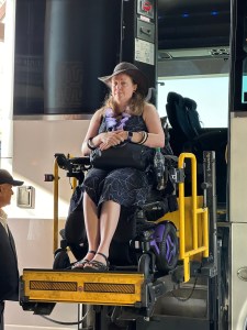 Having told them ahead we were traveling with a wheelchair we had a bus with a wheelchair lift take us from the Polynesian hotel to the boarding area. It took about 50 minutes and was pretty easy. They had to pull into a different area to let me off after all the other passengers were let off, but it was fine.
