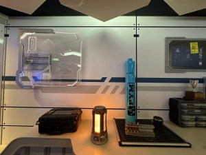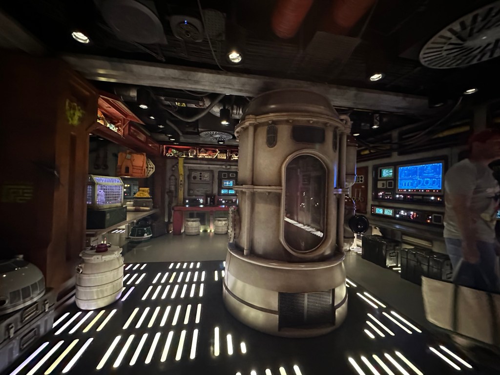 I was most excited by this, since I was desperately missing the Galactic Starcruiser. It was perfectly in world and visually awesome. Sadly the drinks were on the sticky side. Cool smoke-bubble maker though. We did still buy a bunch of glasses (porg ceramic, and the others).