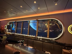 The most elegantly presented cocktails, and the best (AMAZING) view. The Rose Cocktail comes with a rose. We went on the Castaway Cay day and we could see the shore and the para-sailers. Elegant atmosphere. It is also the entrance to the Palo and Encante restaurants so you can get a pre-dinner cocktail while you wait to be called for your reservation (you can check in with the Rose staff).
