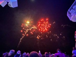 The stage is on deck 11 and there is a roped-off area for disabled parties but based on what I had seen ahead on youtube videos you can’t see the Fireworks from there. Instead we got a fantastic spot for viewing both the fireworks and the show. It was at the back of the balcony on deck 12 looking over the pool on the right side (Starboard) if you are looking at the stage. We could see the action on the stage, but then when the fireworks start on the Starboard side you can see them really well without anything blocking them. If you go down to the pool level it’s harder to see the fireworks.