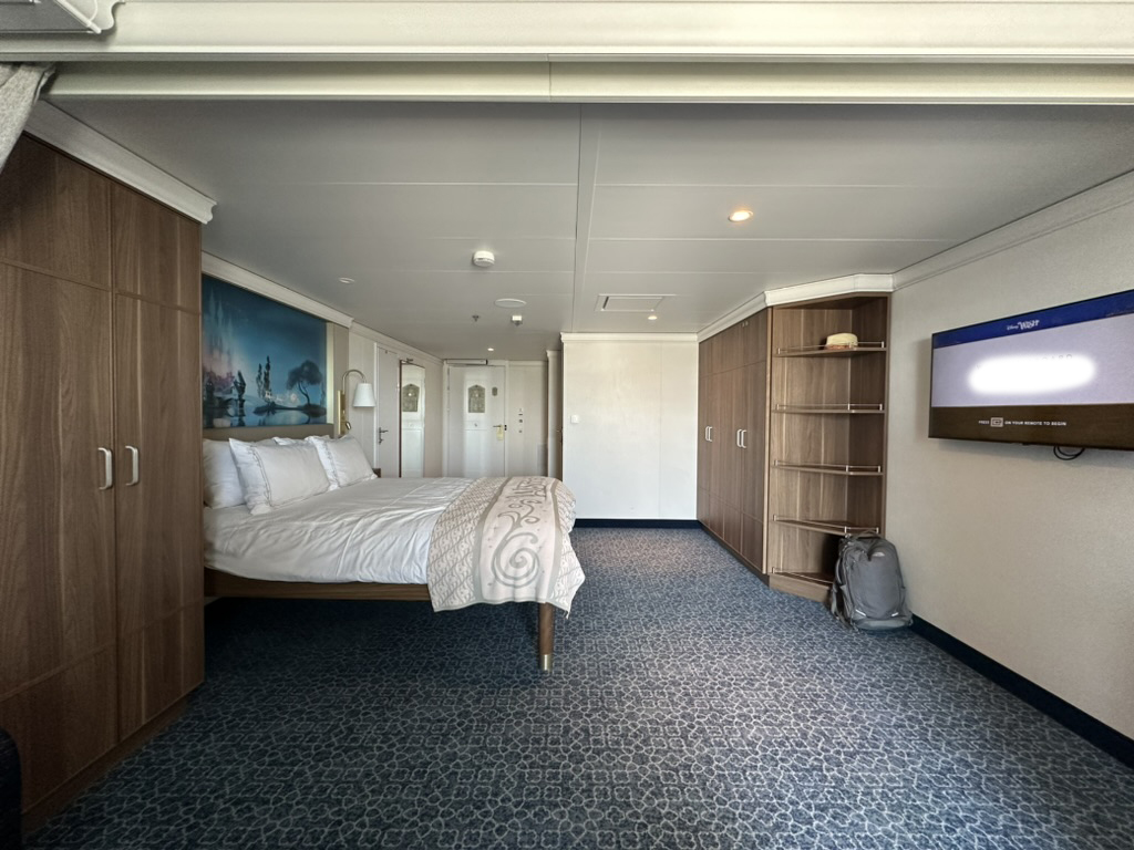 We booked midship on deck 7 in room 7602 (starboard). I had asked ahead what side got better views for that cruise and it was starboard (right). My husband gets seasick and we had zero problems with that on the Wish. I write more about how we chose our room in this planning post.