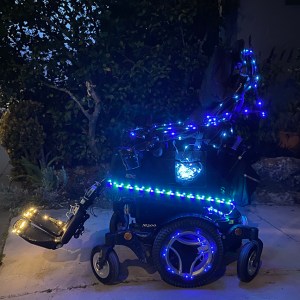 You may want to light your chair for night time to make it more visible to both cars and pedestrians. Some chairs come with lighting or you can buy lighting kits from your wheelchair supplier, but you can also DIY. Either way, have SOMETHING. Going somewhere like Disneyland or a concert at night with a dark chair is a real issue. People crash into you enough in the daytime!